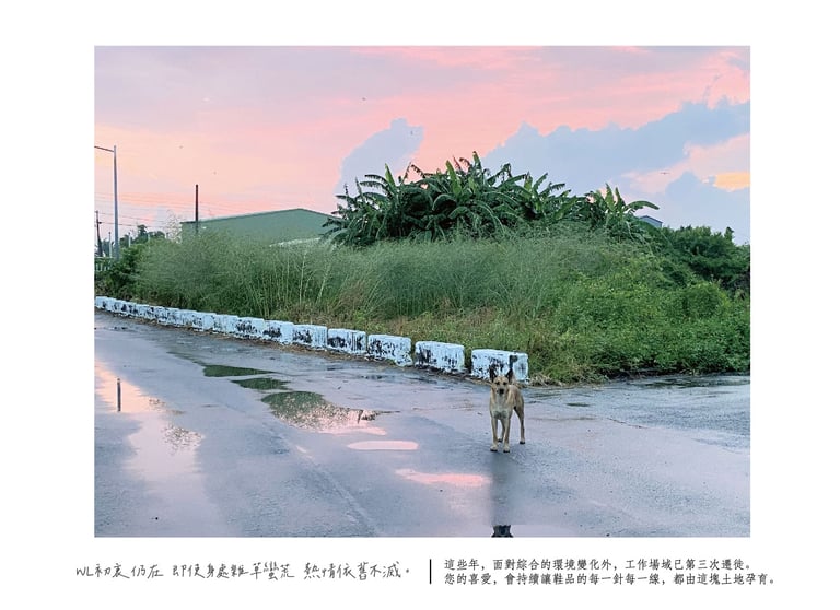 有一段時間,有許多想法和誘因若動搖,也等於這些年白費了。貿易商拜訪,反正只是一雙鞋沒人會在乎,因為大環境都這麼做。但我們仍相信只要一個細節的改變,就會牽動最後的呈現,那我們就繼續服務認同彼此的客群。發展到現在,物質空間的包袱更大了,製作鞋品所需要的模具設備與材料逐年增加,所需要的空間越來越大,所處的區域也越來越偏僻。只要您的喜愛,會持續讓鞋品的每一針每一線,都由這塊土地孕育。