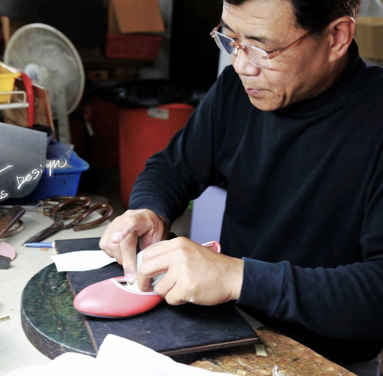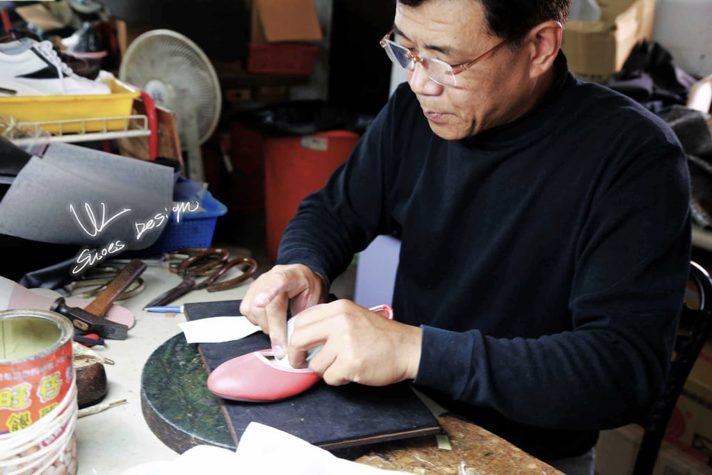 "透過師傅的技術,讓不同設計者的想法能夠實現。魏師傅是家族第三代製鞋人員,擔任打版師。目前持續將技術傳授與協助新世代將設計想法實踐。"他期許每一雙鞋都是從台灣在地製作出來。